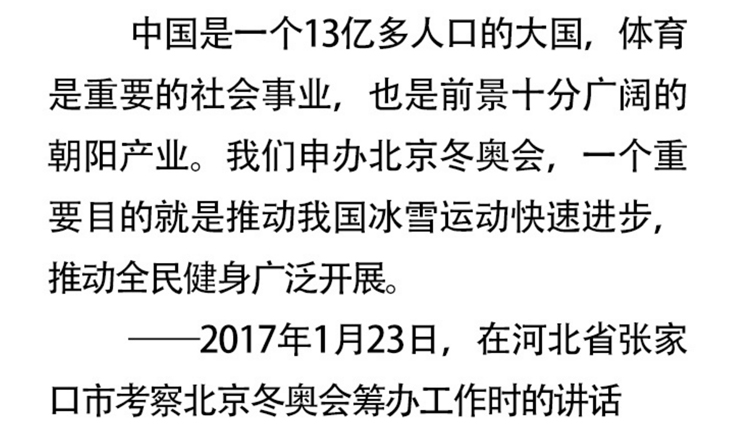 多年来,习近平总书记积极弘扬体育文化精神、倡导体育运动普及发展,在助力中华儿女共圆百年奥运梦和发展奥林匹克文化上更是不遗余力。他曾在不同场合对奥林匹克精神作出阐述,也身体力行加入到践行奥林匹克精神的行动当中。