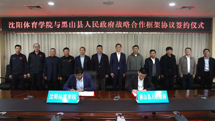 毕业生,回到母校倍感亲切,并一直关注母校发展,特别是沈体健儿在冬奥会上摘金夺银让他感到无比自豪。王华对黑山县的发展历史、在转型发展中取得的成绩和遇到的困难、发展前景和空间,黑山县体育设施及人才、校园体育发展情况等做了详细介绍。他讲到,黑山县文化底蕴深厚,是解放战争转折地,抗日战争起始地,新中国国歌素材地。同时,黑山县还是太极宗师张三丰出生地,并于1996年被国家体委命名为武术之乡,体育基础和氛围非常好。黑山县高度重视与高校的合作,并将以本次签约为契机,致力寻求高层次智力支持,推动创新要素向本地集聚,构建协同创新体系,促进创新链、产业链的深度融合。黑山县将为高校专家科研成果转化与实践积极提供动力和平台,通过校地合作深入挖掘黑山红色旅游文化,加快产业升级,锚定辽宁省新时代“六地”建设目标,打造高品质文体旅融合
