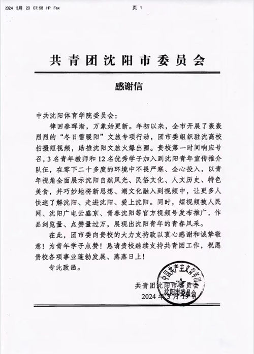 运动训练学院青年志愿者荣获共青团沈阳市委员会表彰,是对青年志愿者们长期以来积极投身志愿服务工作的高度肯定。学院青年志愿者将继续发扬志愿服务精神,以实际行动书写青春华章,为构建和谐社会贡献力量。