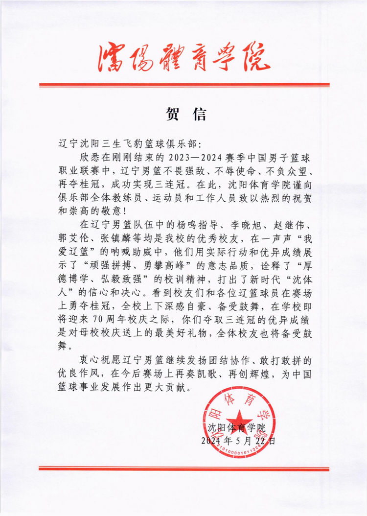 辽望 辽宁日报:三连冠!看球吧 向辽宁男篮致贺信