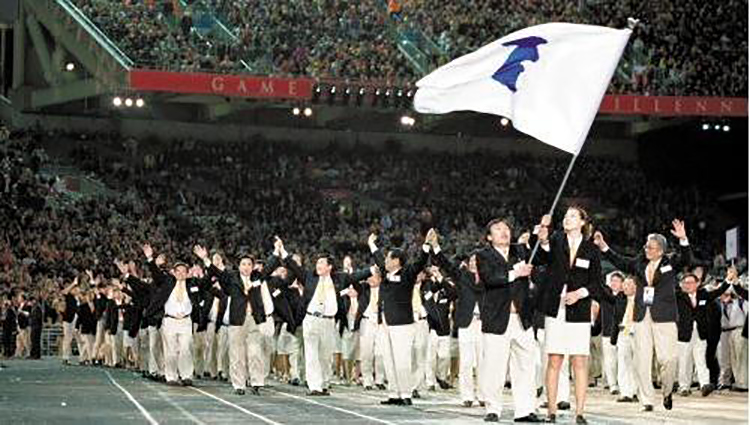 2000年9月15日-10月1日,来自全球200个代表团的1.1万名运动员,参加了第二十七届夏季奥运会。本次赛事作为21世纪的首次夏季奥林匹克运动会载入史册,但是,更具意义的是朝鲜与韩国代表团在开幕式上高举朝鲜半岛标志性旗帜、身着同一服装,伴随歌曲《阿里郎》携手入场的和谐时刻。