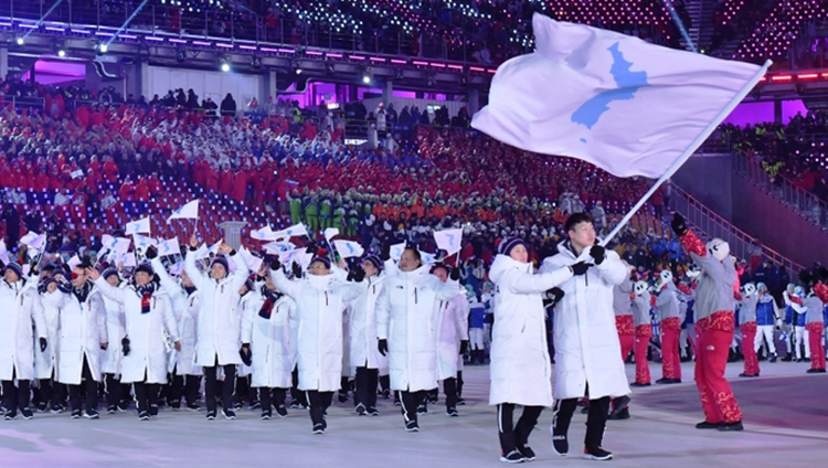 2018年韩国平昌冬奥,已经见证朝鲜半岛在同一时空情况下联手破冰,《阿里郎》再次响起将从体育场域里让两国人民欢聚,当韩国与朝鲜代表团身着同一服装压轴进入开幕式现场的一刻,正如奥林匹克的精神文化内涵一样,昭示着:世界的和平、友谊和团结;也从奥林匹克主义角度体现了:体育、民族和国际主义精神。