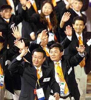 图说:2000年悉尼奥运会,韩朝官员联合入场