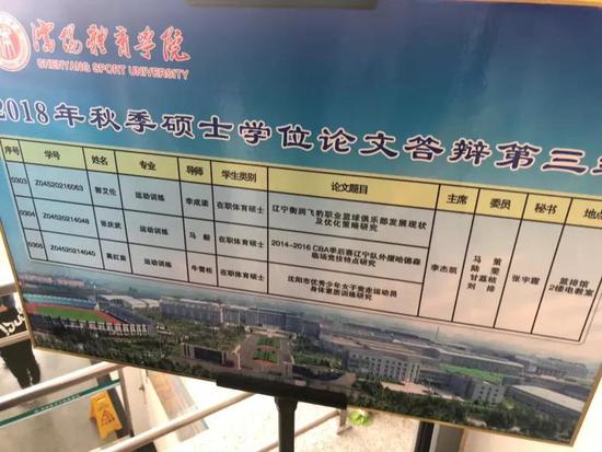 年秋季硕士学位论文答辩情况一览表中,郭艾伦的名字赫然在列,而且从网上发布的照片来看,郭艾伦戴着眼镜,身着西服领带,手里面应该是拿着答辩的文章,在母亲的陪同下准备进行答辩,旁边则有老师和同学在进行讨论。