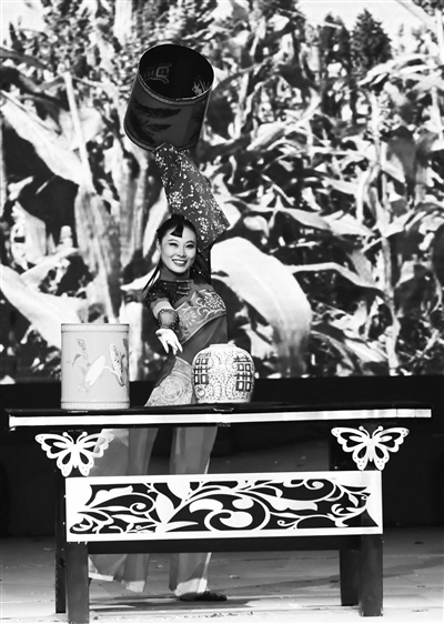 从九儿高粱红烈酒,想到了罗列的烈酒坛子,从一个酒坛子想到许许多多酒坛子,再联想到九儿火辣的性格……董争臻认为,传统戏法中的罗圈献彩是能够推陈出新的。于是,他和冮强找到了温宝良和李诺亚方舟师徒。