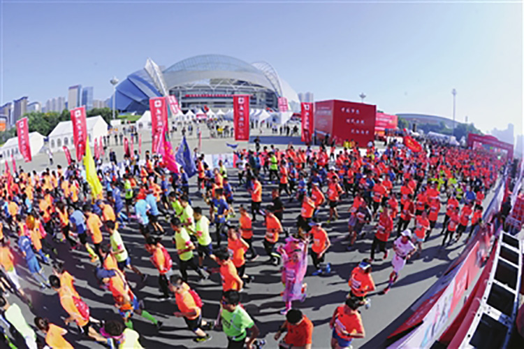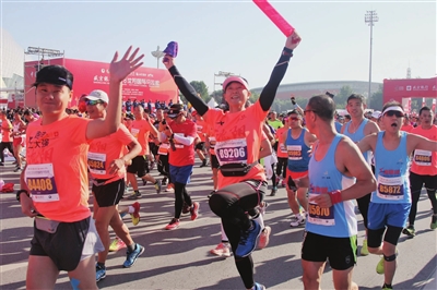 一共有1200余名师生担任赛事志愿者。从起点到全程终点,他们分布于各个服务站,“主要的工作,一是起点组织参赛选手的秩序,保证比赛正常进行;二是各站点的服务工作,送水、备品等;三是记竞赛成绩,引领跑到终点的选手到领奖的地方,领取完赛物品。”范林海这样介绍道。