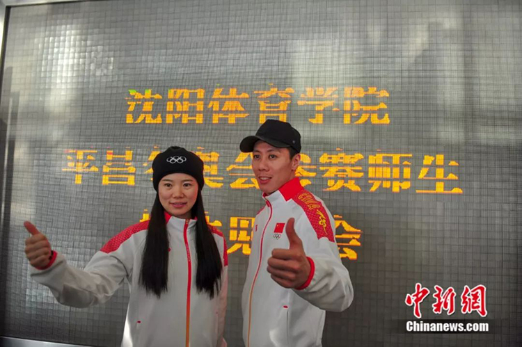 3月2日,平昌冬奥会自由式滑雪男子空中技巧银牌获得者贾宗洋(右)、自由式滑雪女子空中技巧银牌获得者张鑫(左),回到母校看球吧