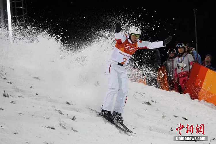 平昌冬奥会自由式滑雪男子空中技巧决赛,中国选手贾宗洋以128.05分获得亚军,图为贾宗洋在比赛中。中新社记者 崔楠 摄