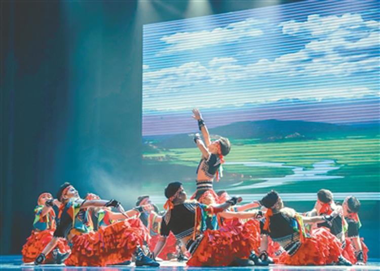 的大学生会堂,座无虚席。璀璨炫酷的舞美,柔美曼妙的舞姿,场面震撼,画面华美,有草原牧民的辛苦劳作与喜悦丰收,有反应现代都市人的彷徨迷茫,也有英雄的足迹、青春的华彩、时代的乐章……大学生们每一支精湛的舞蹈背后,都蕴藏着感人肺腑的故事。