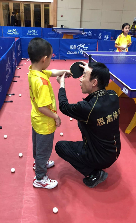 乒乓球馆见到了前中国国手、国家青年队男队教练王俊。已经67岁高龄的王俊指导还在乒乓球桌前手把手纠正着在这里参加思高体育乒乓球夏令营的孩子们技术动作。“现在的孩子条件好了,打球的人也多了,我觉得乒乓球夏令营这种形式很好,让更多孩子爱上乒乓球运动。”王俊说。