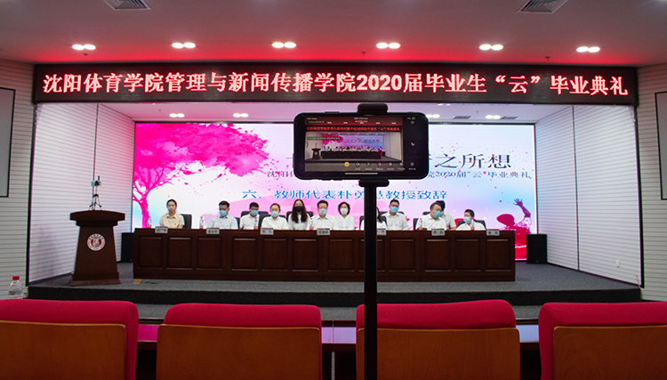 管理与新闻传播学院2020届毕业典礼在图书馆二楼报告厅举行。学院各专业教师代表、辅导员及部分毕业生代表现场参会。学院毕业生及没有教学任务的教师、在校生及家长等在“云端”共同参与了本次毕业典礼。