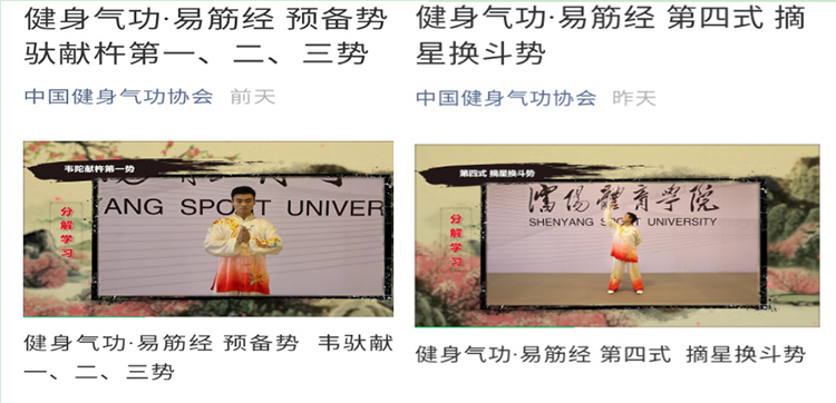 “中国健身气功协会微信公众号平台”由国家体育总局健身气功管理中心主办,面向社会开放。该课程视频自2020年1月8日推出以来,得到健身气功工作者和练习者广泛关注和肯定,更加有力地推动了我校面向公众、服务社会作用的发挥。