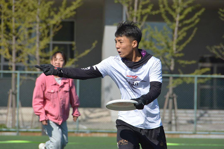 一个个飞盘在空中优美划过,一串串笑声在校园里回荡。