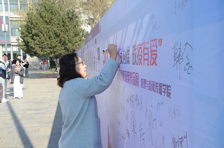 管理与新闻传播学院李芳院长表示:“活动中师生党员带头参与,在培养学生专业技能的同时,开展了一堂生动、深刻的爱党爱国爱校的思想政治教育大课。”