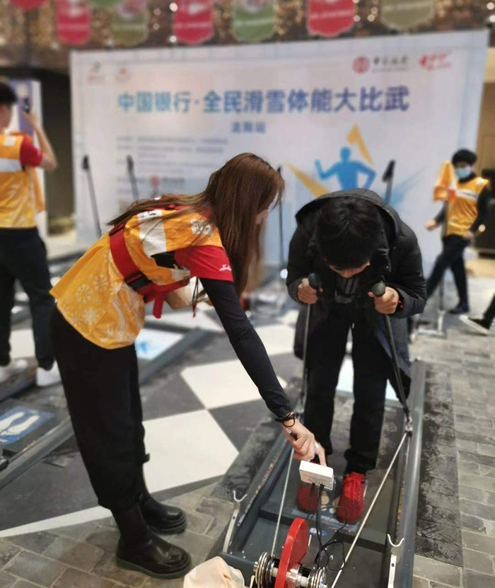 记者在沈阳站活动现场看到,这里使用了国际滑雪专业运动员、冰雪爱好者广泛使用的滑雪训练机进行比赛和体验,很多对滑雪运动感兴趣的市民都在现场报名参与。“使用过程中没有什么噪音,比起低端跑步机的‘震楼器’效果,使用感受要好很多”“动作容错率较高,容易上手”“能够充分调动伏案工作者难以活动到的‘拜拜肉’区域”“同时搭配不同的速度和距离,可以在有氧运动和无氧运动之间灵活切换”……无论是健身达人,还是爱美的女性朋友,爱玩好动的小孩子,大家都能够轻松地在滑雪训练机上找到别样乐趣。