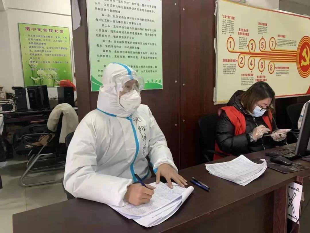 零下20多摄氏度的沈阳,在苏家屯区民主街道南营子社区,一群“00后”大学生身穿防护服,防护眼镜充满了水蒸气,与社区工作者一道奋战在抗疫一线。