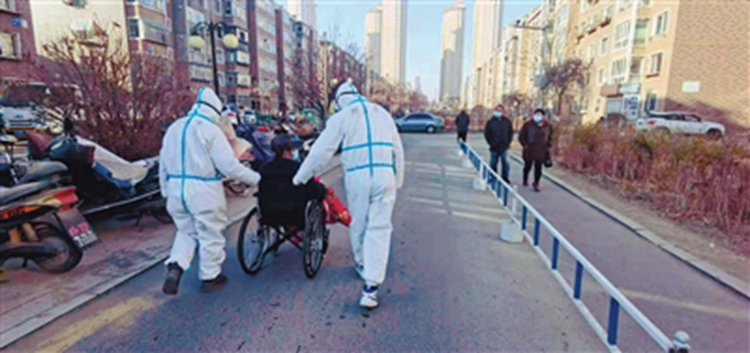 沈阳的“二九”天儿气温降到了零下20多摄氏度,1月4日9时许,这6名大学生志愿者开始消毒并换上防护服,当天的工作是要和医务人员和社区工作者上门为行动不便的人进行核酸检测工作。10时许,带好检测用品,志愿者们跟随一线工作者出发,敲门询问、登记信息、收集垃圾……两个小时的时间很快过去了,一个上午,检测人员的防护眼镜充满了水蒸气,志愿者们也跟随着检测人员完成了十几户的入户检测工作。