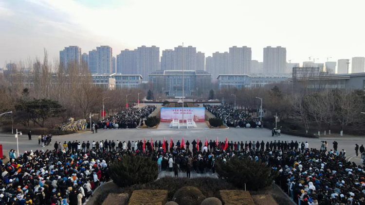 党委书记姚守齐、院长刘征、党委副书记王健、副院长刘兴及相关职能部门负责人、教师和学生代表近6000人参加了升旗仪式。