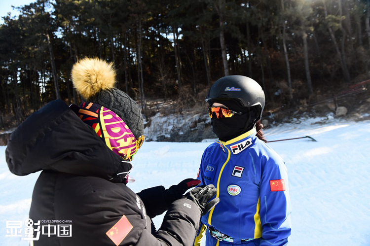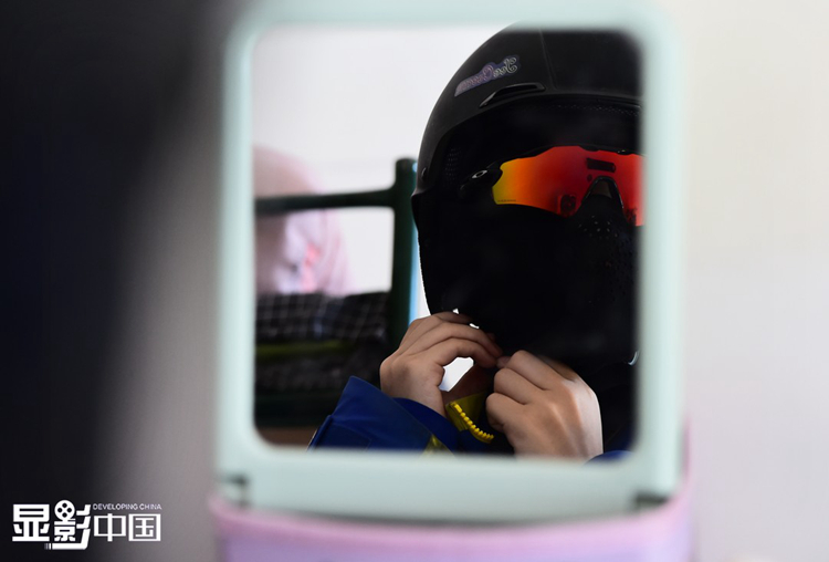 “我的偶像是徐梦桃姐姐,她是我的鞍山老乡,也是中国著名的自由式滑雪空中技巧运动员,9岁时候教练带我去了徐梦桃姐姐家,看到了她的比赛视频和照片,从那一刻起我就迷上了滑雪这个项目,并且励志跟她一样做一名优秀的滑雪运动员。”王升彦竹说。图为王升彦竹在训练前整理着装。新华网 姜冰摄