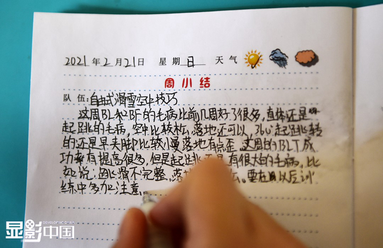 图为王升彦竹在整理训练心得。新华网 姜冰摄