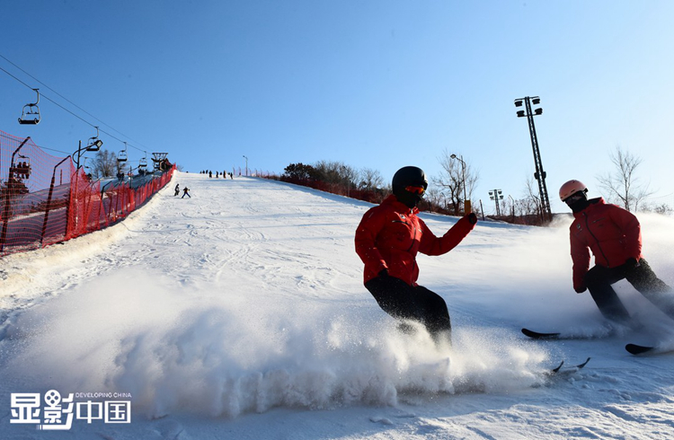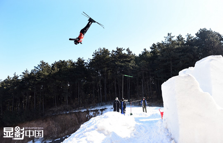 附属竞技体校自由式滑雪空中技巧队,成为了一名滑雪运动员。图为王升彦竹(左)与队友沈好好在训练中。新华网 姜冰摄
