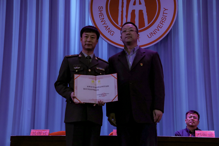 报告会开始前,学生工作部部长兼团委书记白涛同志为吴锡有颁发了《看球吧
