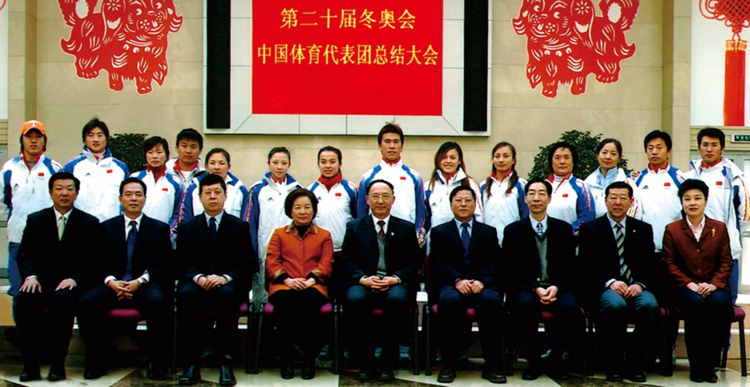 国家体育总局领导与我校参加都灵冬奥会教练员运动员合影