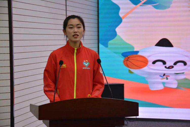 体育教育专业2018级学生高萌,是参与本次活动的学生志愿者之一,1个月前曾在北票市小塔子乡做实习体育教师,这一次以体彩志愿者的身份再次“出征”,在代表志愿者发言时她表示:“巩固拓展脱贫攻坚成果,促进乡村振兴是我们新一代大学生的历史使命,今天作为公益体彩人,出征乐善人生路,肩上的责任让我倍感神圣,在未来的4个月里,我们克服生活上的困难,要精心设计好、上好每一堂体育课,建设好体育社团,与孩子们向上向善、共同进步。”