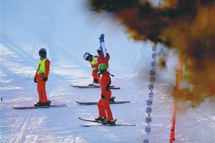 辽宁自由式滑雪空中技巧队队员在训练中。张文魁摄