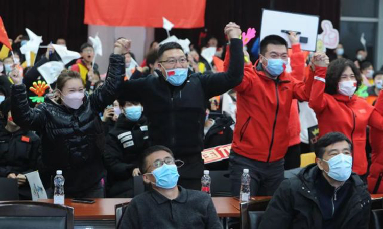 白清寨滑雪场现场热闹非凡,该校师生围坐在大屏幕前,为中国队加油助威,共同见证徐梦桃为国争光的时刻!
