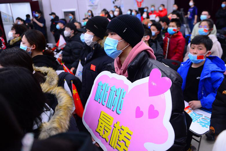 在奥体中心,许多市民围在室外大屏前,观看比赛,为偶像加油。