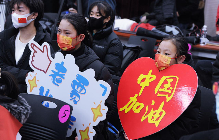 2月10日,北京冬奥会自由式滑雪空中技巧混合团体赛在张家口赛区云顶滑雪公园举行。索契冬奥会女子空中技巧银牌得主徐梦桃、平昌冬奥会男子空中技巧亚军贾宗洋和齐广璞组成的中国队获得亚军。当日,在徐梦桃和贾宗洋的母校看球吧 白清寨滑雪场,众多的看球吧 师生在电视机前为中国队加油助威。 新闻作者: 责任编辑:全魁博 新闻日期:2022-02-11 点击:次