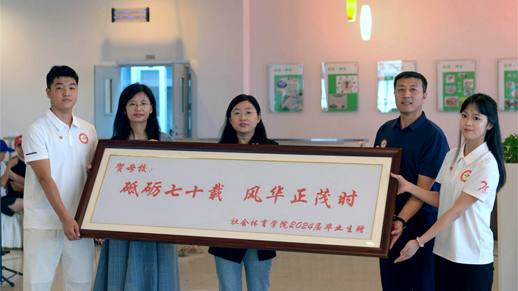 恰逢母校70年华诞,全体毕业生向母校捐赠了一幅精美的刺绣作品,为母校献上了一份特别的礼物。
