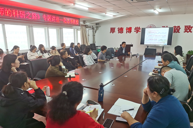 9月25日下午,公共课教研部邀请沈阳师范大学赵忠伟教授为教研部全体教师作题为“高校教师的科研之路”专题讲座,讲座由公共课教研部副主任于淼主持。