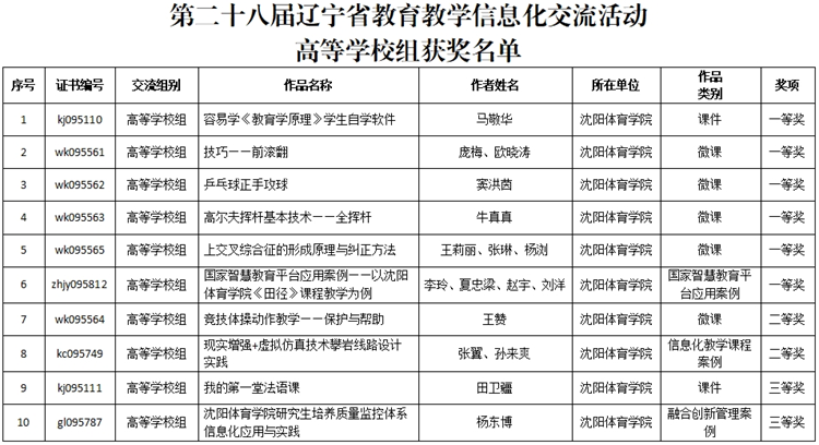 近日,辽宁省教育厅公布了《关于公布第二十八届辽宁省教育教学信息化交流活动评选结果的通知》,我校参赛教师再获佳绩。此次活动共计38件作品参加校赛,作品经专家评审,校内公示,看球吧