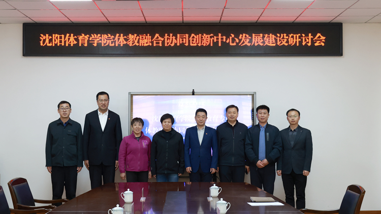 体教融合协同创新中心发展建设研讨会在田径馆会议室召开,体育教育学院领导班子、朝阳市教育局副局长陈中华、法库县教育局副局长赵宏丽、沈阳市铁人三项运动协会会长杨丽华参加会议。会议由体育教育学院副院长鞠秀奎主持。