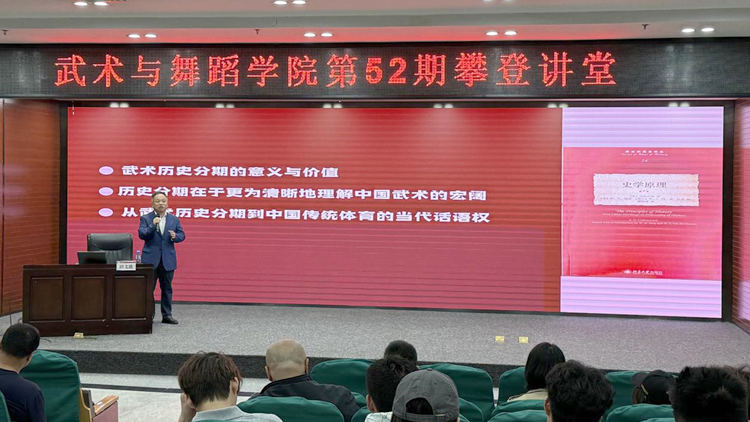 5月20日,武术与舞蹈学院邀请太原工业学院田文波教授作题为《武术历史研究的新视野与新范式》讲座。讲座由院长勾庆华主持,武术与民族传统体育专业师生和基础教学部教师参加了本次培训。 田文波以“武术发展研究”为主线,从武术历史研究的新视野、武术文化的历史研究视野、武术的社会史研究视野以及新文化史与新社会史视野下的武术发展研究等四个方面深入浅出地为大家讲解武术从何处产生,何时成熟,何以武术。讲座聚焦武术在民间社会的传统积淀与当代演进,激发师生树立文化传承使命感,肩负起传承民族传统体育文化的重任。 新闻作者:武术与舞蹈学院 责任编辑:全魁博 新闻日期:2025-05-21 点击:次