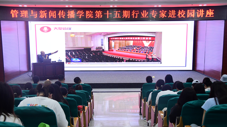 6月11日,管理与新闻传播学院举办第十五期行业专家进校园讲座,特邀辽宁广播电视台阮峰主任作题为“时政新闻拍摄和编辑要点”专题分享。管理与新闻传播学院部分教师、新闻学专业学生、党委宣传部看球吧学生干部参加培训。