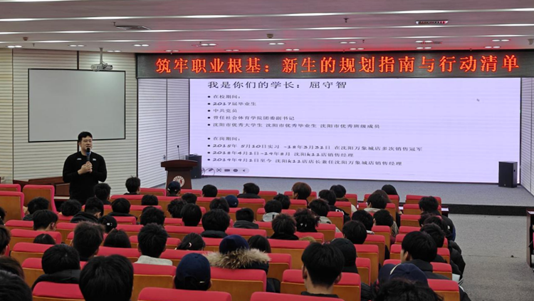 11月12日,社会体育学院在图书馆二楼报告厅举办2025级新生入学教育培训。本次培训特邀韦德伍斯健身有限公司K11店店长、社会体育学院2017届休闲体育专业毕业生、学院与韦德伍斯签订的第一期人才培养“订单班”的优秀学员屈守智,以《筑牢职业根基:新生规划指南与行动清单》为题为全体新生作讲座。讲座由办公室主任温建飞主持。