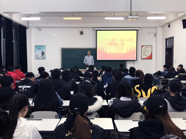 包健峰结合发展党员工作的具体实际,就大学生入党应履行的程序和手续进行了详细的讲解,详细地阐述了党员发展的四个阶段,以及每个阶段所履行的手续和程序,通过讲述使每名学生明确清楚的知道党员从递交入党申请到成为正式党员的全过程,以及党员发展的基本要求、规定和原则,在一定程度上解决了同学们在入党方面所存在的疑惑,明确了努力方向。最后,他希望同学们大学期间严格要求自己,尽快从思想上、行动上向党组织靠拢,争取早日成为一名光荣的中国共产党党员。