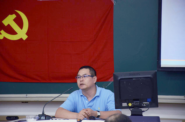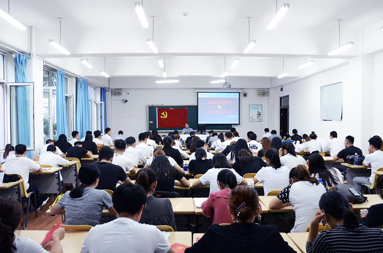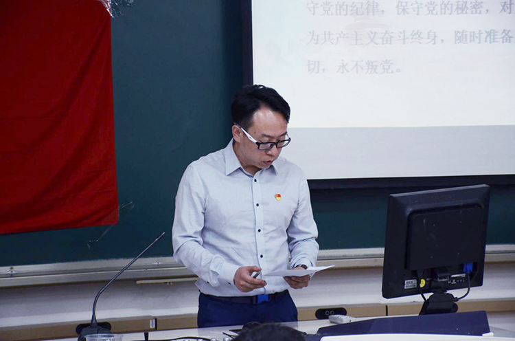 面对鲜红的党旗,高举右手、握紧拳头,重温入党誓词,宣誓共产党人坚定的理想信念。6月27日下午,研究生部(学科建设办公室)党总支组织全体党员在教学楼217教室听党课、重温入党誓词,活动由研究生部(学科建设办公室)党总支副书记赵江主持,党委宣传部、统战部副部长朱翠立上《我国安全环境与国家安全战略》专题党课。