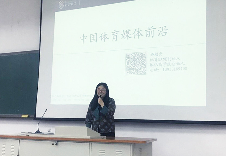 本次报告的主题为“中国体育媒体前沿”,安福秀博士从体育产业的五大新领域、体育媒体生态链、现有大型体育媒体平台等内容为切入点,对体育媒体的行业动态和前沿进行了细致地讲解和深入的剖析。安博士用自身创业的成功案例和经验对学生提出了切实可行的实习与就业的建议。部分学生针对自己学业和就业上的疑惑与安福秀博士进行互动交流,与会师生纷纷表示在本次讲座中受益匪浅。
