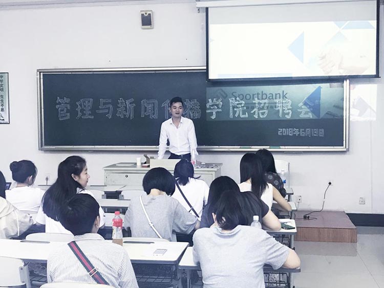 6月13日下午,管理与新闻传播学院在教学楼117教室举办“体育BANK”专场招聘会,招聘会由管新学院党总副书记高鸿雁主持,体育新闻传播学、新闻与传播专业硕士研究生和新闻学专业、网络与新媒体专业本科生参与了本次招聘会。