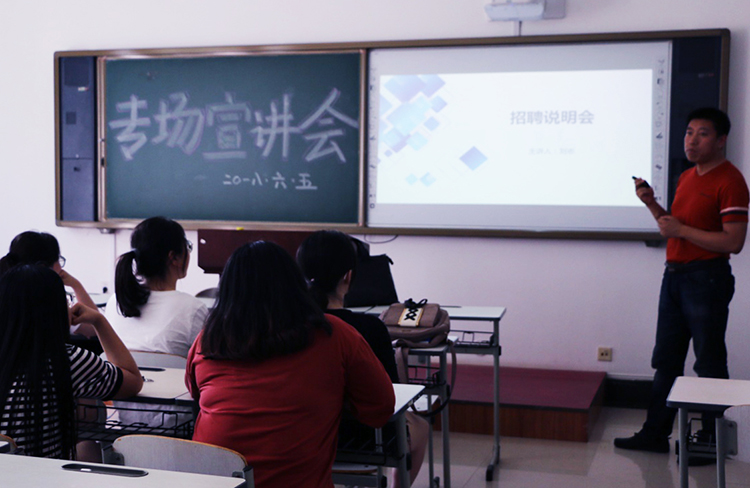 招聘会后,沈阳内经鑫格科技有限公司法人刘志在107教室为同学们作就业专场宣讲。刘志结合自身经历,分别从招聘单位说明、企业用人原则、职业通路与职业规划四点进行讲授。