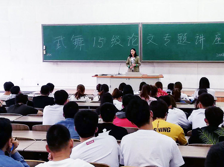 教师李松作讲座 教师史磊作讲座 5月下旬,为全面推进本科生毕业论文、毕业设计的开题,强化学生对本科毕业论文和毕业设计重要性的认识,启发学生原创精神,提高学生创作水平和创作质量,武术与舞蹈学院邀请姜娟、李松、贲驰和史磊四名教师为2015级武术与民族传统体育、运动训练、舞蹈表演、舞蹈编导四个专业学生作了四场专题讲座。 四场讲座内容丰富,案例详实,既有严格的要求,又有灵感的启发,为2015级学生毕业论文和毕业设计工作的顺利开展打下了坚实基础。 新闻作者:武术与舞蹈学院 林大志 责任编辑:朱翠立 新闻日期:2018-05-30 点击:次