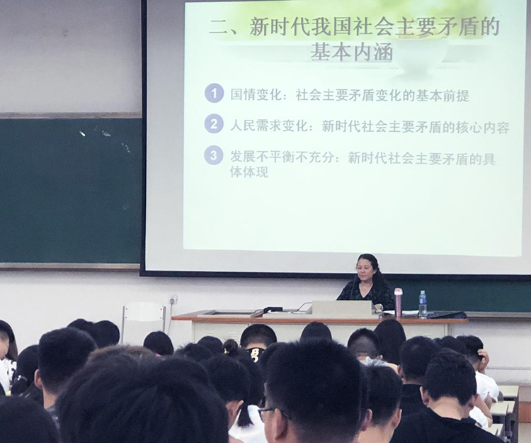 包金荣结合自身经历,以新中国成立以来我国社会主要矛盾的变化、新时代我国社会主要矛盾的基本内涵以及解决新时代我国社会主要矛盾的着力点为切入,向同学们详细讲授了我国社会主要矛盾的变化。通过包书记理论结合实际的释义与讲学,同学们深刻领会了读懂一个时代需要读懂这个时代的问题,改变一个时代需要解决这个时代的问题。
