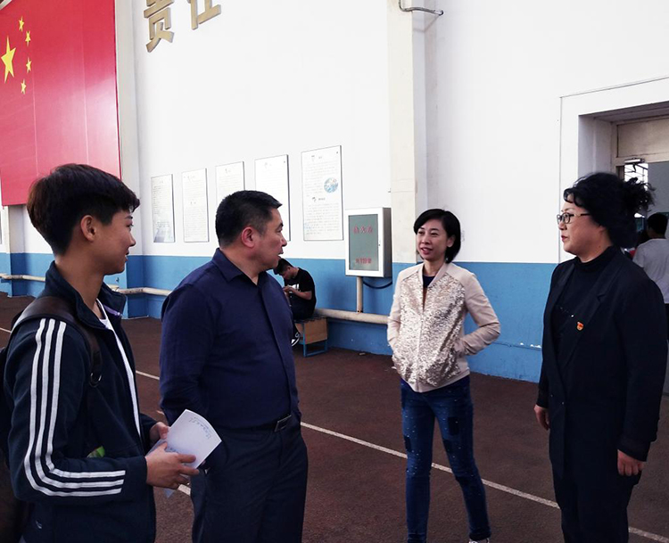 体育教育学院院长郝庆威(左二)、招生就业处副处长罗美娟(右一)在招聘会现场