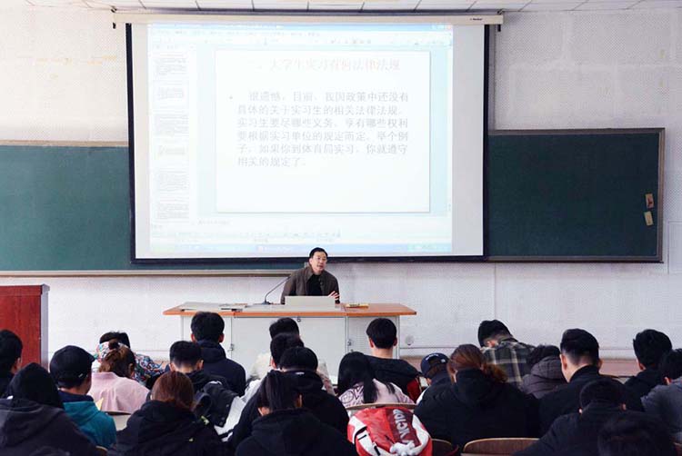 4月15日上午,社会体育学院在教学楼112教室举办了2015级实习前法律培训讲座,科研处处长罗嘉司教授为即将走上实习岗位的全体社体2015级学生进行培训。