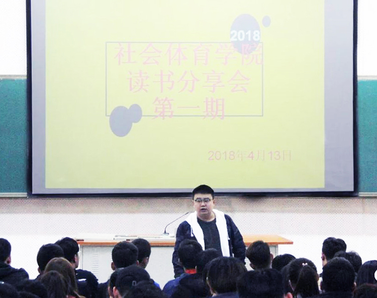 4月13日晚,在教学楼112教室社会体育学院团委举办“懂感恩、讲诚信”读书分享会活动,社会体育学院团委书记孙海峰及2017级所有在校生参加了本次活动。