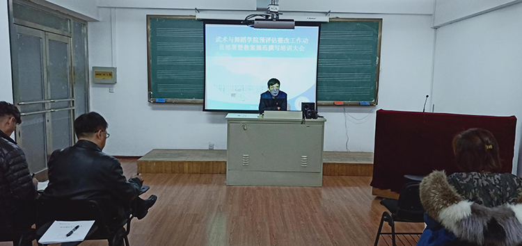 11月14日下午,在武舞馆二楼电教室,武术与舞蹈学院组织召开了预评估整改工作动员部署暨教案规范撰写培训大会,全体教师参会。大会由副院长王永刚主持。